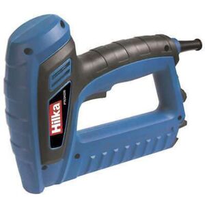 Professional Tools1 Year Warranty Included 230v Electric stapler with impact adjustable settings. Contact safety switch to avoid misfire and an anti-jam mechanism for smooth operation.The bottom loaded for staples and nails and ergonomic soft grip handle to allow for more comfortable use. Contents: 400 x 14mm staples, 100 x 15mm nails. Specification: Rated current - 5A, max firing speed 20pcs a minute, max length of nails 16mm 18 gauge brad nail, length of staples 8-16mm w0.75xT0.6mm staples, volt/frequency 230v-50hz.Requires type 55 staples: 11.3 wide x 0.75 depth x 8-16mm height and type 48 nail 2.0mm wide, 1.25mm depth x 15-16mm height.
