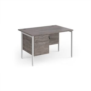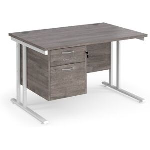 Maestro 25 straight desk 1200mm x 800mm with 3 drawer pedestal - white cantilever leg frame, grey oak top