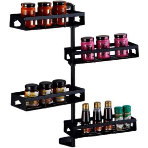 This spice rack is made of metal,powder-coated surface, long service life, not easy to rust.The size of this spice rack is11.5"L x 3.8"W x 8.6"H, the gap between each layer is 2", suitable for most cabinets. Each layer has a compact and moderate space to ensure that your precious spice jars will not fall off.It has an open and inclined design cabinet spice rack, which is convenient for you to quickly locate and obtain the required spices, thereby saving you cooking time and pressure. The 4-tier spice storage rack can hold 24 spice jars, which is very suitable for storing most spice jars.2 Packs kitchen spice racks can be placed in cabinets, storage rooms, shelves, cabinets or countertops, or just hung on the wall (with hardware included) to maximize your storage space and meet your different needs.It can easily make your countertops neat and tidy and organized. It is an ideal spice storage helper for every cooking enthusiast. Belfry Kitchen Finish: Black