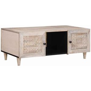 This solid wood coffee table adds a lovely touch of understated elegance to your living room. It’s got that rustic vibe, combined with a sturdy design. The weathered top looks great against the sleek black shelves, creating a nice contrast. With this coffee table, you can turn your living room into a cozy yet classy space. It fits in perfectly with all sorts of styles, offering a textured feel that everyone will love. Solid Mango Wood Construction - This table is made from solid mango wood that's both strong and good-looking. It brings warmth and elegance while making sure it lasts a long time, giving you a stable piece that brings nature indoors. Ample Storage Solutions - With its spacious shelves, this coffee table is perfect for keeping magazines, books, and other small items tidy. The shelves are versatile and smart for using your space efficiently. Rustic Elegance - The weathered finish gives this coffee table a lovely vintage feel that fits all kinds of home styles, adding rich