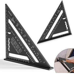 【Precision Measuring Tool】You will receive a black carpentry triangle with a thickness of 4mm, a measuring range of 0-180mm, the scale is clear and accurate, and the value is easy to read. Can be used as a protractor, ruler, etc., the thick edge allows you to use the saw directly on the square, and the engraved scales of the protractor can be used for cross or bevel cuts. 【Easy Marking】The 7-inch metric triangle is an excellent measuring tool for sawing corner crosses or corner cuts, and the protractor scale allows you to accurately mark cutting lines quickly and easily. You can also use it to quickly determine angles from 0 to 90 degrees. There is also a quick conversion table on the front of the angle ruler, which can save a lot of time. 【Unique Design】There is a hollow sub-frame in the middle of the carpentry triangle, which can be used to quickly draw lines and graphics on the wood board, and the convenient T-shaped mounting surface can be fixed on the wood board. . So you can