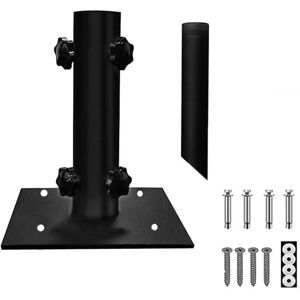 [All-round stress is more stable] Equipped with four knobs, so that the outdoor umbrella not have problems such as loosening of the space, sliding of the umbrella stand pole and tilting of the umbrella stand when the outdoor umbrella is fully stressed and fixed. Adjustable range: Φ1.12inch-1.57inch [Suitable for Three Scenarios] The bottom design is suitable for installation on concrete, wooden decks and lawns, and it comes with all required installation accessories. [Installation Use] The patio/dock umbrella base holder can also be used for flag pole mounts, light pole mounts, selfie camera mounts, shade sail pole mounts, and other types of poles suitable for residential and commercial use [WIDELY USED] This umbrella base stand is perfect for decks, piers, pontoons, patios, picnic tables, and any other place that can be secured with the included lag screws. [RUST-PROOF MATERIAL] This deck mount umbrella stand is made of heavy-duty metal base, which is . stainless. Colour:Black