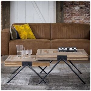 Frank's 'Grey Mix' coffee table set of 2 features teak wood with a sleek gray finish. Versatile and stylish, these tables offer flexibility in design with a sturdy black steel frame. Industrial Coffee Table Frank set of 2 Frank's 'Grey Mix' coffee table set of 2 features teak wood with a sleek gray finish. Versatile and stylish, these tables offer flexibility in design with a sturdy black steel frame. Material Crafted from high-quality teak wood with a sophisticated gray finish, Frank's coffee table set exudes elegance and durability. Features The set comprises two individual tables, offering versatile styling options. Their sleek design is accentuated by a robust black steel frame, featuring a cross frame with four legs for stability. Maintenance To maintain its pristine appearance, simply wipe the surfaces with a soft, damp cloth. Avoid harsh chemicals or abrasive
