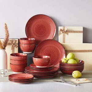 This dinnerware set setting for 12 is an ideal gift for yourself and your loved ones. Made of handpainted spiral patterns and durable stoneware, this graceful table setting has been crafted for long-lasting satisfaction and enjoyment. Cleaning up is as simple as can be with dishwasher-safe dinnerware! Perfectly compatible with many cold and hot food without worry about chips, nicks, cracks, and scratches.Ideal for daily use or festival decoration. Vancasso Colour: Red