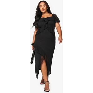Boohoo Womens Plus Mesh Frill Detail Maxi Dress - Black - Size 28 Uk