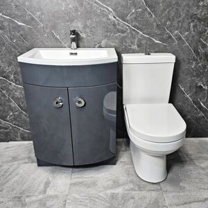 Hydros Mia D Shape Vanity Unit Anthracite Grey Gloss Curved & Life Toilet Bathroom Set Hydros Mia D shape 600mm anthracite grey vanity unit with basin 600mm D shape bathroom vanity unit Anthracite grey gloss finish Modern contemporary design Includes 1 tap hole white resin basin with chrome overflow Two doors - creates extra bathroom storage space Rigid built unit (ready assembled) With two chrome finish handles Sizes approx: height: 830mm Width: 600mm Depth: 456mm Roca Life Close Coupled Toilet Life close coupled pan, cistern & soft close seat Dual flush Includes cistern fittings Modern D shaped design Made by one of the World’s leading bathroom manufacturers Dual flush cistern 4,5/3L Made by Roca but the ceramic does NOT have the Roca brand stamped on it Sizes approx: Width: 365mm Depth: 670mm Height: 750mm Pan height only: 405mm Option to add With Hannah Basin Mono Mixer Tap at extra cost Modern style basin mono mixer tap Contemporary design Single lever control Chrome finish