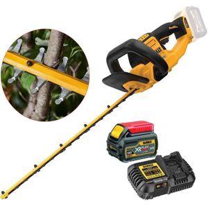 The DEWALT DCMHT573X XR FlexVolt Hedge Trimmer comes with: 1 x 18/54V 9.0/3.0Ah FlexVolt Li-ion Battery 1 x Fast Charger The DEWALT DCMHT573 XR FlexVolt Hedge Trimmer has high performance brushless motor that delivers improved performance, power and run time. Its dual action, laser cut blades are made of hardened steel for longer life and lasting sharpness. The lightweight design helps minimise user fatigue. It is fitted with an ergonomic handle for comfortable handling and reduced fatigue when using the machine for longer periods. Specification: Strokes at No Load: 3,400/min. Blade Length: 65cm, 31mm gap