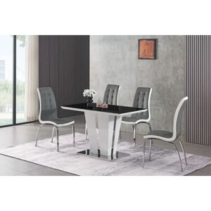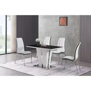 Elevate your dining experience with the Gianni Dining Table, a masterpiece of modern design that commands attention in any room. Crafted with impeccable attention to detail, this table boasts a striking tempered black glass tabletop adorned with white high gloss MDF edges for a touch of contemporary flair. At the heart of the Gianni Dining Table is a beautifully sculpted pedestal featuring an exquisite stainless steel insert, adding a touch of luxury to every meal. Supported by a gleaming base with a stainless steel surface and MDF construction, this table combines durability with sophistication. The smooth surfaces of the Gianni Dining Table are visually stunning and effortless to maintain, ensuring that its natural lustre shines through for years to come. Whether hosting intimate gatherings or formal dinners, this elegantly modern table effortlessly complements your interior decor, making it the perfect centrepiece for your dining room. Features Stunning white high gloss dining