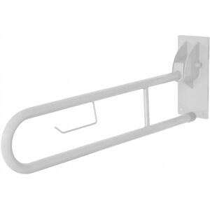 Bathroom Grab Rail Support Bar Foldaway Swing Arm White For Doc M Toilet Hydros drop down support arm Fold away up against the wall when not in use, then pulled down when needed White gloss finish Ideal for use in he bathroom where safety is a concern Simple fold up/fold down mechanism Please note: this listing is for one drop down support arm only Sizes approx: Length: 84cm Height: strong>20cm