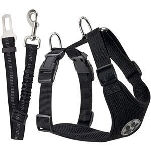 Size M Color Black Pattern Solid Material Nylon Closure Type Button Product Weight 0.15 Kilograms Target Species Cat, Dog Care Instructions Hand Wash See more About this item A perfectly made accessory. Breathable Chest Harness with Mesh Strap: It is made of double mesh fabric with flannel trim; it is fixed on four PP straps - Breathable and sweat-absorbent for your dog's well-being. Elastic Seat Belt: It is made of durable nylon webbing to protect the dog, it is elastic and adjustable for the car. - It is fully adjustable, depending on the length of the safety straps you want to keep in your car. The included safety strap is long enough to travel on the back seat. Safe and Comfortable: The harness wraps around the dog's body and neck, just like a collar. - Easy to Use and Release: There are four buttons on the neck band, it is easy to adjust to your dog's clothes, which is suitable for small (6 lbs, 33 lbs), medium (33 lbs, 55 lbs) and large (55 lbs, 88 lbs) dogs or medium kittens
