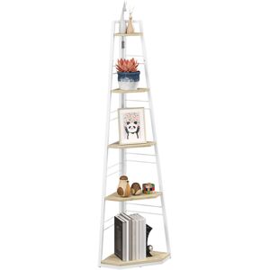 Bring out storage the easy way, with this HOMCOM corner shelf! This slender, vertical ladder shelf comes with five tiers -plenty of space to show off your favourite decorations and photos, as well as room for books. The steel frame ensures a strong core, complete with adjustable feet to keep it balanced. Specifications: ● Colour: White ● Material: Particleboard, Steel ● Overall Dimension: 37.5W x 37.5D x 160H cm ● Each Tier Dimension (Top to Bottom): 15W x 15D cm, 20W x 20D cm, 25W x 25D cm, 29.5W x 29.5D cm, 35W x 35D cm ● Each Tier Height (Top to Bottom):8 cm, 35 cm, 35 cm, 35 cm, 36.5 cm ● Weight Capacity: 25 kg (total), 5 kg (each shelf) ● Item Label: 838-519V00WT Features: ● Sharp corner design fits in easily, bringing space in smaller spots ● Five shelves: plenty of room for books, flowers, photos, ornaments and more ● Steel frame for a strong core, with wood-effect particle board shelves ● Adjustable feet to stand balanced at all times ● Anti-tipping kits to securely fix to a