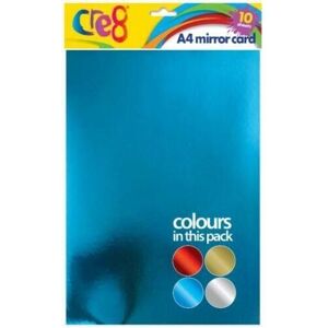 This A4 mirror card is popular all year round and also loved during the Christmas season. Make your papercraft's shimmer and shine with this product! Give your projects glam for card making, poster backgrounds, cut out details, collages and more perfect for children or grown ups. Product Size: A4 Product Dimensions: 350x220x30mm Weight: 130g Card Quality: 200GSM Each product includes 10 Sheets in Red, Blue, Gold and Silver.