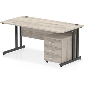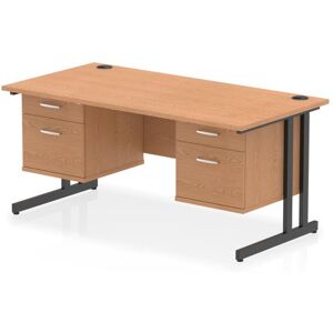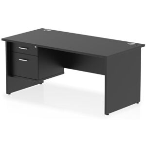 Impulse 1600 x 800mm Straight Office Desk Black Top Panel End Leg Workstation 2 x 2 Drawer Fixed Pedestal