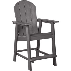 Iconic Outdoor Lounger. Invite timeless style to your outdoor living spaces. This universal outdoor bar chair is the perfect mix of traditional design with a modern finish. Wide armrests, a flat angled back, and a contoured seat offer a place to kick back and fully relax. Manufactured with high-quality faux-wood material, assembled with stainless steel components, the chair combines low maintenance with a high-end finish. Mix and match various colours to liven up your patio or create an elegant matching ensemble. Details: Product Type: Garden Chair Style: Retro General Color: Grey Shade: Dark Grey Material Type: Synthetic Material Main Material: Plastic Wood Additional Material: Stainless Steel Legs material: Synthetic Material Seat Material: Synthetic Material Armrests: Yes Foldable: No Stackable: No Dimensions: Armrests Height: 91 cm Depth: 71 cm Seat Height: 62 cm Width: 58 cm Height: 124 cm Seating Surface: 49x51 cm Weight: 19 kg Weight Capacity: 160 kg Offer Includes: 1 x Bar
