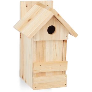 Provide your feathered friend with a safe retreat during spring or winter. This wooden nesting aid with pointed roof is lovely to look at in your garden or on your balcony. It is especially valuable to woodpeckers, titmice and other smaller birds. Hung at least 2m above ground level, it protects them from rain, wind and predators thanks to the small opening. You can watch with your kids as the young birds eventually take first flight. Please note: When hanging up the nesting box, make sure of adequate ground clearance and a safe environment. Nesting Box Details - Total size H x W x D: app. 25 x 16 x 14 cm - Diameter entry: app. 2.8 cm - Weight: app. 560 g - Material: Fir wood - Colour: Natural Natural Nesting Aid for Garden or Balcony - Provides a safe retreat in spring or winter - For small birds like titmice etc. - Protects birds from rain, wind and predators - Removable front panel for easy cleaning - Watch birds in your garden or on the balcony Included in Delivery - 1 x Birdhouse