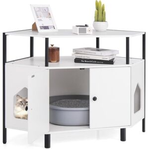 Craft a cozy retreat for your cats with this versatile cat cabinet, designed to snugly fit into any corner of your home, optimizing space while enhancing home aesthetics. This cat litter box enclosure boasts a 2-door system, ensuring easy cleanup. Ample private space is provided for cats and the enclosed frame can hide unpleasant smells. And the dual-entrance design allows for easy access. Its not just a hideaway, the robust cabinet top surface and shelf offer ample storage for your cats essentials, doubling as a chic spot for your decoration. Engineered for stability, the sturdy cat washroom cabinet supports a weight of up to 90 kg and sits securely on adjustable pads, ready to withstand the quirks of uneven flooring. More superior details await your discovery.