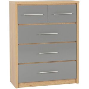 Features: Composite board Paper veneer Plastic veneer Mdf back panel Mdf drawer base Metal handle Metal drawer runners Plastic feet Dimension & Weight Dimension: L39.5 x W85 x H110.5 cm Weight: 40.9kg . Seville 3+2 Drawer Chest. Delivery is free to UK Mainland, excluding AB31 to AB38, AB40 to AB56, IV, KA27 & KA28, KW, PA20 to PA78, PH4 to PH50 and ZE in Scotland; BT for Northern Ireland; all postcodes within the Republic of Ireland where a surcharge will apply, please check before ordering.. 3#5