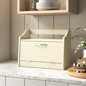 This beautifully designed Bread Bin is the ideal storage for your bakery items. Perfect to free up storage space and attractively enhance any kitchen at the same time as making easy access to your bakery items! The bread bin will easily hold a standard loaf with plenty of room for other items. This versatile and practical kitchen bread box brings a touch of contemporary and traditional influence with its simple lines and fresh color. This Bread Bin is freestanding to fit easily in your kitchen. With the additional feature of a good-sized galleried shelf above the bread, the Bread Bin has been designed so that kitchen worktop space is not lost and makes perfect storage for mugs, jams, etc. A super, stylish way to maximize kitchen space! Self-assembly required using easy-to-follow instructions. Brambly Cottage Colour: Creamy Yellow