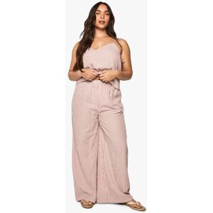 Chic striped pattern for a timeless look Wide-leg silhouette for ultimate comfort High-waisted design with flattering fit Drawstring waist for adjustable comfort Versatile woven crepe fabric with slight stretch Make a statement with these effortlessly stylish plus-size striped trousers from Boohoo. Perfect for the fashion-forward woman who values both comfort and trend-setting style, these trousers offer a versatile day-to-night option. The wide-leg cut and high-waisted design create a flattering silhouette, while the drawstring waist ensures a customisable fit. Pair with a crisp white top and trainers for a casual daytime look, or dress them up with heels and a blazer for an evening out. The woven crepe fabric provides a polished finish with just the right amount of stretch, making these trousers ideal for long days at the office or nights out on the town. Whether you're heading to work, meeting friends for dinner, or attending a social event, these trousers will keep you looking chic and feeling confident.