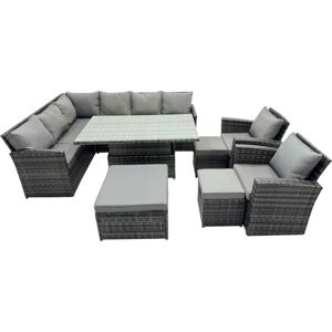Built to last! This heavy-duty rattan sofa set features a rust-proof steel frame and all-weather PE wicker, designed to withstand sun, rain, and wind. A perfect, low-maintenance choice for outdoor relaxation. Set dimensions: •1 x 3 Seater sofa with double armrest: 162L x 67W x 79H cm(Fully Assembled) •1 x 3 Seater sofa with single armrest: 157L x 67W x 79H cm (Semi-Assembled) •1 x rising dining table: 140L x 80W x 68/48H cm (height up 68,down 48) •1 x Big Footstool :65L x 65W x 34H cm •2 x Small fully assembled footstools :40L x 40W x 34H cm •2 x Chair: 74W x 69D x 79H cm Dark Grey Mixed rattan with dark grey fabric .Color may vary due to light or monitor .we are unable to return the item due to this problem .Please consult before purchase if you have requirment on color saturation. Table Can Be Used Both For Coffee Or Dining Table,Great Price Compared With Other Online Or Offline Store For Rising Table Set Items Comes Flat Packed And Easy to Assemble,Sturdy Galvanized Steel Tube