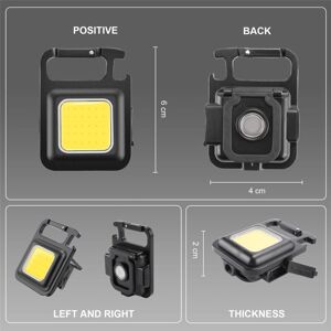 1. Made of high-quality aluminum alloy, light weight, good texture, strong and . 2. Multifunctional design, can be used as emergency lights, inspection lights, fishing lights, etc., and can also be used as a bottle opener. 3. A variety of ways of use, the back comes with an adjustable bracket and a magnet, you can choose to put it on the desktop or attach it to any iron object, or hang it for use. 4. Mountaineering hanging buckle design. With this quick hanging buckle, you can hang it on backpacks, belts, keys, or wherever you want to hang the buckle. 5. It is very small, and portable, it is very practical, very suitable as a gift to yourself or family and friends. LED type: COB light-emitting diode type: 30 COB wicks Battery type: 500mAh lithium battery Lighting mode: high-medium-strobe Charging time: about 5h Lighting time: 1.5-4 hours Waterproof: rainproof (can not put in water) Maximum irradiation distance: 10m/32.8ft Maximum brightness: 500 lumens Output: 500mA