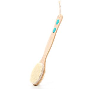 Ergonomic Design: The 46cm extra long shower brush is used to thoroughly clean your back and hard-to-reach areas of the body such as your back and feet. The shower back brush has a slight curvature that makes your bath more enjoyable, while a straight-handled shower brush may require more effort to reach your back. It is an ideal long-handled back brush for showering! Optimization and Upgrade: The bath back brush is made of bamboo and natural bristles. The long-handled bamboo back brush is sealed with a premium waterproof coating and has an explosion-proof bottom plate to ensure durability and protection against bursting. Non-slip and Hanging Design: The bath body brush is wrapped with a linen rope, the handle is non-slip with better grip, and can be firmly fixed on the hand during bathing. If the non-slip rope slips on the handle, the rope can be reattached. Or you can completely remove the non-slip cord, which allows you to use the bath brush normally. Wet and Dry Use: The natural