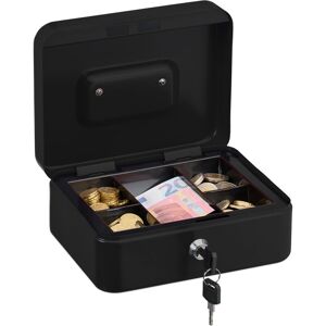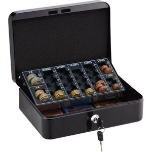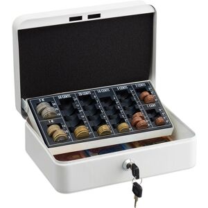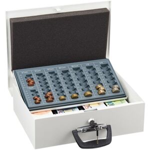 If you want to store cash safely, this cash box is the right choice. The cash box is suitable for use at home as well as at flea markets, fairs and other events. The removable insert with 5 compartments allows you to sort hard cash by value so that you always have an overview. There is space for notes and receipts in the compartment below. The cash box can be securely locked and easily transported using the carrying handle. Cash box in detail - Dimensions H x W x D: approx. 8.5 x 20 x 17 cm - Weight: approx. 0.8 kg - Material: iron, plastic, steel - In various colours Cash box with lock - For storing cash, coin rolls and receipts - Lockable cash box for secure cash storage - Removable insert for quick sorting and removal - Easy to transport thanks to retractable carrying handle - Sturdy cash register made of robust iron with powder coating - For clubs, fairs and flea markets, school events and much more Scope of delivery - 1x savings cassette - 2x keys - Decorative items are not