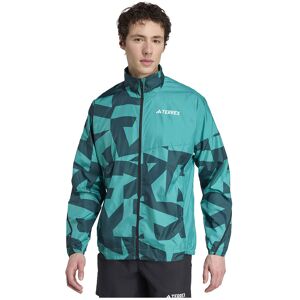 Exposed ridge or changing weather, this versatile Terrex windbreaker is a lightweight running jacket that lets you push into the alpine or cover up as the weather changes.Lightweight ripstop material blocks the wind and holds in heat.The lightweight design packs into its own pocket for compact storage in a vest or pack.Side pockets keep your phone, snacks and other small stuff handy.This product is made with 100% recycled materials.By reusing materials that have already been created, we help to reduce waste and our reliance on finite resources and reduce the footprint of the products we make.A lightweight windbreaker jacket made in part with recycled materials.FEATURES:-Regular fit.-Full zip with stand-up collar.-100% polyester (recycled).-Pack it pocket.-Side pockets.-Elastic cuffs and hem.-Ultraviolet Protection Factor (UPF).