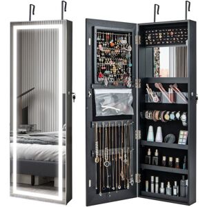 This 120cm mirror jewelry cabinet is designed not only for storage but also for makeup and dressing. The full-length mirror offers a large view from your head to toe, and the LED lights are adjustable in 3 color temperatures (3000K warm yellow, 4000K warm white, 6500K cool white) with easy operation through the touch switch. The inside space of this organizer is divided into various storage partitions, which keeps your jewelry and makeup well organized. This jewelry organizer is available for both door hanging and wall mounting, and the required accessories are included in the package. Full-Length Mirror and Interior Mirror: The full-length mirror in a narrow frame provides a distinct head-to-toe view of the outfit. And the interior makeup mirror is convenient to collocate jewelry and cosmetics. Product dimension (without hooks): 40 cm x 12.5 cm x 120 cm (L x W x H). 3-Color LED Lights and Touch Switch : The LED lighted full-length mirror can be adjusted in 3 color temperatures: 3000K