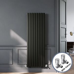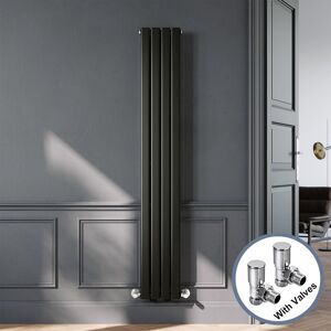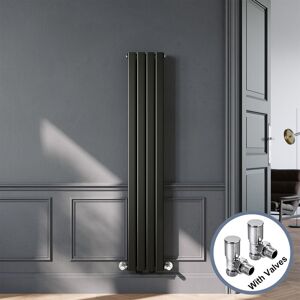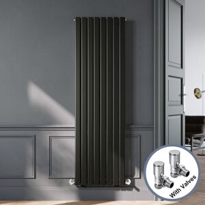 Vertical Black 1600 x 272mm Designer Radiator Layer Single Material Steel Weight 11kg Watts 371 BTU Rating 1200-1300 Power Source Hydronic(Hot water) Accreditations & Testing: Material: Low carbon steel Manufactured in accordance with BS EN 442 Registered: Complies with ISO9001:2015 Suitable for all UK central heating systems Normal Radiators Valves Size may vary due to manufacturing process by +/-20mm if the stated size Modern compact angled valves Solid brass construction in chrome finish Standard 15mm pipe connection Connects to 1/2" BSP thread radiator/towel rail Suitable for wall pipe work