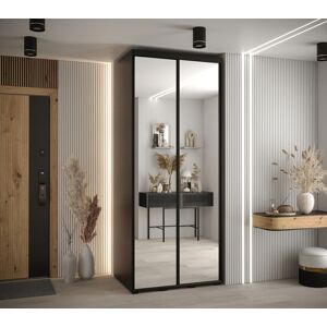 BAKU 2 -door sliding wardrobe with mirror and lower runners. Perfect design. Thanks to the lower sliding door opening system, the wardrobe is also suitable for smaller rooms. Two door leaves, right and left, are made of laminated panels and have plastic handles to make it easier to open the wardrobe. The left door leaf with a large mirror visually enlarges the room. The two -part wardrobe and its depth of 62cm allow for optimal use of space. The left side of the wardrobe has a wide shelf. The remaining part is divided in the middle by a partition wall and several shelves (6), which allows for even better organization of the room. The right door leaf has a wide shelf and a clothes rail. The cabinet body and the door fronts are made of laminated board. The wardrobe is delivered disassembled - assembly is quick and easy thanks to the enclosed instructions. Latitude Run Finish: Black, Size: 215cm H x 155cm W x 62cm D