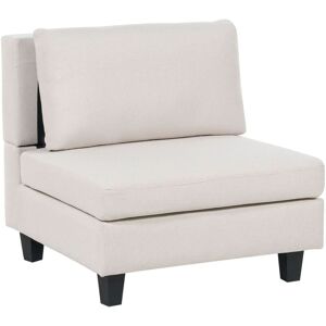 Single Seat for Modular Sofa. Upgrade your modular sofa and living room with this 1-seat section. Made out of durable polyester fabric, which resembles linen, the piece is very pleasant to touch, while also being durable. The thickly padded seat offers great comfort when sitting, which is additionally elevated by a cushioned backrest. The whole construction is also stable due to wide legs in black colour. Details: Product Type: Module Element Style: Modern General Color: Beige, Black Shade: Light Beige Material Type: Fabric Main Material: Fabric Additional Material: Eucalyptus Wood Filling Material: Foam Material Composition: 100% Polyester Shape: Rectangular Arm Style: Armless Fabric Upholstered Back: Yes Leg Caps/ Pads: No Pattern: Solid Seat Construction: Sinuous Springs Seat Foam Density: 30 kg/m3 Seats Up To: 1 Person Dimensions: Depth: 76 cm Seat Thickness: 10 cm Seat Height: 39 cm Width: 76 cm Height: 72 cm Seating Surface: 76x64 cm Weight: 17 kg Weight Capacity per Person: 130