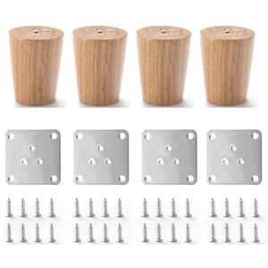 Set of 4, height 6 cm, with mounting plate and screws Suitable for sofas, TV cabinets, cabinets, tables, beds, etc. Made of rubber wood, it is sturdy and durable enough to last for years. The legs are stable and reliable, with strong bearing capacity. Increasing the height of the furniture can prevent moisture and dirt. The legs are covered with a transparent coating and can be painted in any color. Ideal item to replace furniture legs in your home. Note: The legs are made of natural wood, the pattern and color of the item may be slightly different from the picture, this is normal.