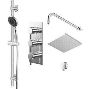 Model Number: WDB74791 The thermostatic shower valve ensures that water always flows at a perfect temperature, while the sleek chrome finish adds a touch of sophistication. The Circo Polished Chrome Concealed Twin Thermostatic Shower Valve with Diverter and 300mm Round Head with 150mm Ceiling Arm and Outlet Holder with Kit- 2 Outlets is made hardwearing and ready to stand the test of time. Say goodbye to outdated fixtures and welcome the lightweight and durable shower head, crafted from stainless steel. With a modern design, strong pressure resistance, and a swivel for adjustable comfort, the Circo shower head effortlessly upgrades your showering space. The transformation doesn't end there - the outlet holder and kit featuring rust-resistant brass construction, a striking polished chrome finish, and a modern round design handset, promising an unforgettable shower experience. Elevate your valve kit today to create a shower that surpasses your wildest expectations. Key features Valve