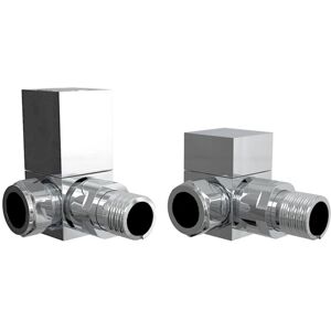 Minimalist non-thermostatic manual corner radiator valves in a contemporary Polished Chrome finish. Crafted from solid heavyweight plated brass Polished Chrome finish Comes as a pair Simple manual operation Contemporary square design Easy-Clean surfaces Size: UK Standard 1/2" x 15mm Installation Type: Corner