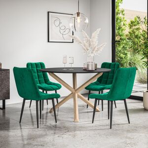 The Donni Dining Table is a beautifully crafted rectangle dining table with a timeless, minimalist design. The table boasts an elegant hardwearing, scratch resistant Black Oak effect table top that brings warmth and natural charm to any dining space, perfectly complemented by unique, sturdy, solid Black metal legs for a modern contrast. The Donni's simple yet sophisticated design makes it a versatile centrepiece, ideal for both casual meals and formal gatherings. The Donni Dining Table can seat 4-6 people, and yet its compact rectangle shape is perfect for maximizing space while creating an inviting and intimate dining experience. The Donni Dining Table is available in a range of tops (Grey, White Marble effect. Oak effect, and Black), with Black metal legs. With the Monza Dining Chair the Donni Dining Table will be the complete set. With a choice of Linen and Faux Leather in various colours, this sleek modern Dining Chair compliments the Donni Dining Table brilliantly. Available as a set of 4 or 6 with the Donni Table. Dimensions: Height: 75cm. Width:160cm. Depth: 180cm. Leg Depth: 75cm. Leg Width: 145cm. Chair Height: 92cm. Chair Width:45.5cm. Chair Depth: 58cm. Seat Depth: 43cm. Seat Width: 44cm. Seat Height: 46cm. Backrest Height: 50cm. Backrest Width: 35cm. Metro Lane Colour: Black/Oak/Black