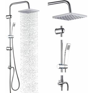 GENERAL DESCRIPTION This Shower Mixer Chrome Head Bathroom Square Valve Twin Bath Kit Set features high-quality materials and a modern design. It includes an ultra-thin overhead shower and a versatile handheld shower. TECHNICAL SPECIFICATIONS Material: 304 stainless steel and ABS plastic Finish: Chrome coating Shower hose material: Stainless steel Flow rate: 4L/min - 9L/min Temperature tolerance: 20 - 50 degrees Celsius Diameter of shower hose: 24mm Hose length: 1.5m Recommended pressure: 1 - 5 Bar 15 degree tilt swivel head COMPATIBILITY AND ACCESSORIES Compatible with combination boiler systems Compatible with Megaflow systems Compatible with pumped hot water systems Compatible with un-vented hot water systems Compatible with standard pressurized hot water cylinder type systems