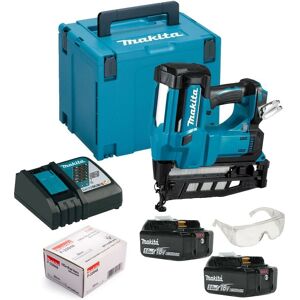 The Makita DBN600Z 18V 16g 2nd fix finishing nailer bare unit designed for second fix carpenters, cabinet makers and joiners. The nailer takes 16 gauge 25 - 64mm straight brad nails. The magazine holds up to 110 brads at a time. Keep working for longer as the machine will fire up to 800 shots per battery charge (4.0Ah). The nail gun can be set to fire sequentially or in bump firing modes, selectable by an easily accessible rocker switch. LED job light makes it easier to work in low light levels. Features and Benefits: Driving depth adjustment by dial Anti-dry fire mechanism Sequential and bump firing modes selectable by rocker switch Bumper protects work-piece from scratches and damage LED job light Tool-less nail jam clearing Ergonomically designed grip Window to check qty of remaining nails Belt Clip For finishing applications Includes 2x BL1850 5.0ah Batteries Charger Makpac Case with Inlay