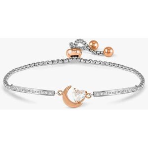 Elevate your everyday style with the Nomination Milleluci Silver & Rose Gold Crown Toggle Bracelet. This adjustable piece combines a shimmering, stone-set half-bangle with a rose gold-tone crown charm featuring a single cubic zirconia at its centre, finished with a coordinating toggle clasp. A perfect blend of polished stainless steel and warm rose gold accents for a chic, versatile look. Item Code: 028017/039