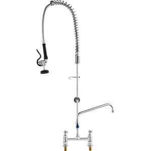 Commercial Faucet with Sprayer This pre-rinse faucet features both high and low outlets. The spray gun is equipped with excellent strong flushing power, achieving effective rinsing and wide coverage. The rotating faucet delivers water gently, ideal for washing fruits and vegetables. Deck-Mounted Commercial Faucet Leak-Proof Tightness High-Pressure Sprayer Hot and Cold Dual Control Adjustable Center Commercial Deck Mount Kitchen Sink Faucet This pre-rinse faucet features both high and low outlets. The spray gun is equipped with excellent strong flushing power, achieving effective rinsing and wide coverage. The rotating faucet delivers water gently, ideal for washing fruits and vegetables. Key Features Deck-Mounted Commercial Faucet: This 44-inch tall pre-rinse faucet is designed for installation on kitchen countertops, featuring a spray head and a 12-inch swivel faucet, easily tackling complex and tough dirt challenges. It is suitable for use with 3-compartment professional-grade