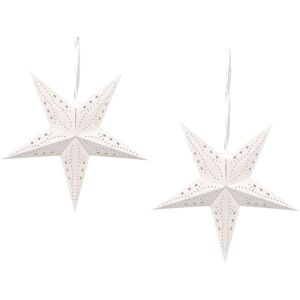 Christmas Stars with LED String Lights. Create a welcoming atmosphere for any occasion with this set of two paper stars in a velvet-like paper finish. They take just a moment to assemble, but leave an everlasting impression. Featuring decorative cut-outs, the stars spread a cosy, warm light, perfect for long Christmas evenings. As the decoration runs on batteries, you don’t have to worry where to plug it in, just set it on or put on a timer and enjoy its ambient light. Details: Product Type: Wall Decor Style: Modern General Color: White LED Colour Temperature: Warm White Shade: Off-White Main Material: Paper Additional Material: Copper Wattage: 0.3 W Handmade: No LED: Yes Light Bulbs Required: 10 Orientation: Vertical Voltage rating: 3 V Dimensions: Depth: 18 cm Width: 60 cm Height: 60 cm Weight: 0.3 kg Offer Includes: 2 x Decoration, Not Included: Batteries Key Features: Perfect as Seasonal Decoration, Openwork Structure Projects Great Shades, Eye-Catching LED Light Creates Pleasant