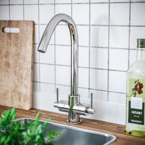 The kitchen tap has a simplistic design and would fit perfectly in almost any kitchen. It has an extreme curved spout and a modern twist of a single lever handle. It is finished in polished chrome which would match your basin in the majority of kitchens.