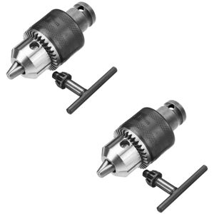 High quality and brand new The sturdy, specially hardened key parts increase durability, strong impact resistance. For use with a 1/2-inch impact wrench, the 3/8-inch chuck allows you to lock and release bits to help you stay on the job. The classic 3-jaw keyed chuck securely holds a wide range of twist drills and step drills with a 1/16-inch-3/8-inch shank The 1/2-inch square socket adapter can easily turn an electric impact wrench into a drill. Name: Drill Chuck Shank Type: 1/2-inch Square Socket Adapter : 3/8-24UNF Note: The chuck can NOT be used counterclockwise! Color: Black Material: Metal />Size: 1.5-10mm Package Contents: 2 x Drill Chuck 2 x 1/2 Inch Square Socket Adapter 2 x Wrench Only the above package content, other products are not included. Note: Light shooting and different displays may cause the color of the item in the picture a little different from the real thing. The measurement allowed error is +/- 1-3 cm.