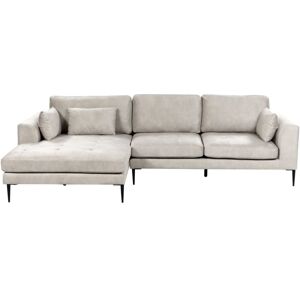 Velvet Upholstered L-Shaped Sofa. This corner sofa strikes a wonderful balance between comfort and style. The chaise located on the right side from a sitting person's perspective creates a perfect relaxation spot, while the cushioned seat and backrest provide a cosy seating experience. Tufting on the seat adds a touch of sophistication, and the additional scatter cushions introduce a hint of flair. With its minimalistic design and track armrests, this sofa exudes simplicity and elegance, making it a versatile choice for any home. Details: Product Type: Corner Sofa Style: Scandinavian General Color: Grey, Black Shade: Light Grey Material Type: Fabric Main Material: Velvet Additional Material: Plywood Filling Material: Foam Material Composition: 100% Polyester Shape: L-Shaped Arm Style: Track Orientation: Right Hand Pattern: Solid Seat Construction: Pocket Springs Seat Foam Density: 30 kg/m3 Seats Up To: 3 People Dimensions: Armrests Height: 62 cm Depth: 158 cm Seat Thickness: 11 cm