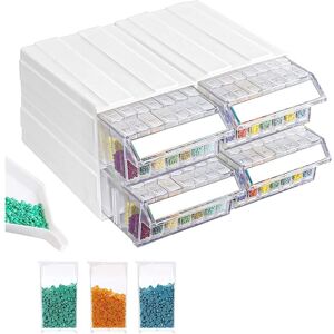 FEATURES: The container is designed to freely combine unlimited combinations, which means it can be stacked as a drawer desktop cabinet. SIZE: Outer box 9.44 inch x 7.28 inch x 4.33 inch / 24 x 18.5 x 11 cm, Mini box 1 inch x 2 inch x 0.5 inch / 2.5 x 5 x 1.2 cm. MULTI-FUNCTIONAL: Suitable for storing diamond embroidery beads, crafts, small items, nail accessories, rhinestones, beads, seeds, fishing hooks and other smaller items. SAFE MATERIAL: Made of high quality transparent plastic, environmentally friendly and sturdy. Color: White Material: plastic Package Contents: 1 * Box of storage 200 * stickers 1 * white tray Only the above package content, other products are not included. Note: Light shooting and different displays may cause the color of the item in the picture a little different from the real thing. The measurement allowed error is +/- 1-3 cm.