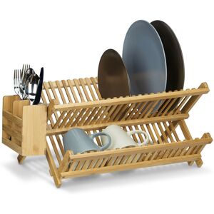 Make doing the dishes easier with this dryer which allows crockery to dry on its own after washing. Place plates, cups, breakfast bowls and more in the cross-shaped drainer - the water will drip right off! Hang the cutlery basket on the right to easily dry knives, forks and spoons across the two compartments. The drip rack is made of bamboo and is ideal for humid environments. When everything is dry, simply fold up the drip rack and store away. Details of Bamboo Drainer - Dimensions H x W x D: approx. 24 x 46 x 28 cm - Folded size: approx. 34 x 46 x 4 cm - Cutlery basket dimensions H x W x D: approx. 13 x 18 x 6.5 cm - Weight approx. 1.2 kg - Material: 100% bamboo, metal cutlery holder - Fully collapsible Dish Rack for Plates, Cups and Bowls - Allows wet crockery to drip off by itself - Place plates upright between the struts - also suitable for large plates! - With fold-out shelf for cups, small glasses and bowls - Optional 2-compartment hanging cutlery basket - Sturdy and durable as