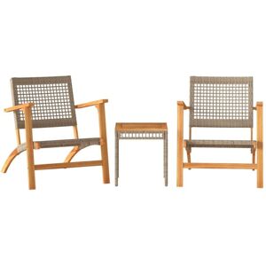 3 Piece Bistro Set Beige Poly Rattan and Solid Wood Vidaxl