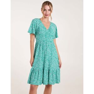 A stunning floral dress with it's refreshing color and button front will be perfect for the office this summer time. Match with sunny sandals. Blue Vanilla Women's Ditsy Printed Angel Sleeve Elasticated V Neck Dress in Blue Size: Large/XL