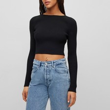 Long sleeve cropped jumper - fine rib structure - transseasonal viscose stretch - round neck - 42% viscose 23% polyester 20% recycled polyamide 13% polyamide 2% elastane - hand wash, Material: Viscose.