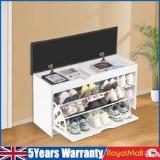 Modern design shoe cabinet with soft padded cushion, good choice for hallway, living room, etc. It consists of storage for several shoes in two handy flip down sections beneath cushioned seat area. There is one board in each flip-drawer, which is removable for setting distance due to different sizes shoes. The seat cushion which is removable is ideal for comfortable sitting while putting on and taking off shoes. This shoe cabinet will blend perfectly with any home decor. Tidies up your hallway or porch nicely hiding all your shoes. You can combine this shoe bench with the wall coat rack FRG282-W as a hallway set. Product Details Material: MDF. Dimensions: W105 × D35 × H48cm. Weight: 19.5kg. Load capacity: 150kg. Item comes in a flat pack and requires self-assembly. Detailed instructions supplied. The decorative elements are not included in the delivery.